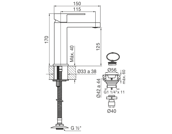 Juego monocomando para lavatorio