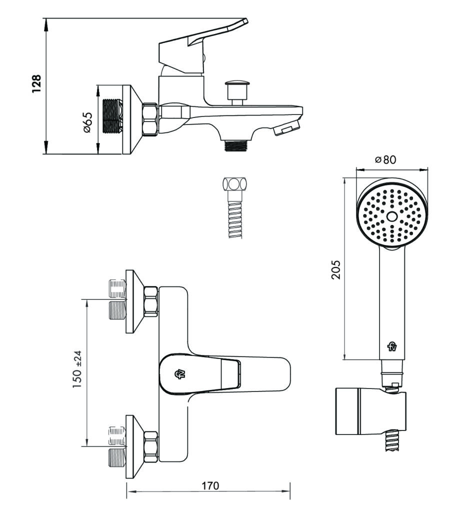 Juego monocomando para bañera y ducha