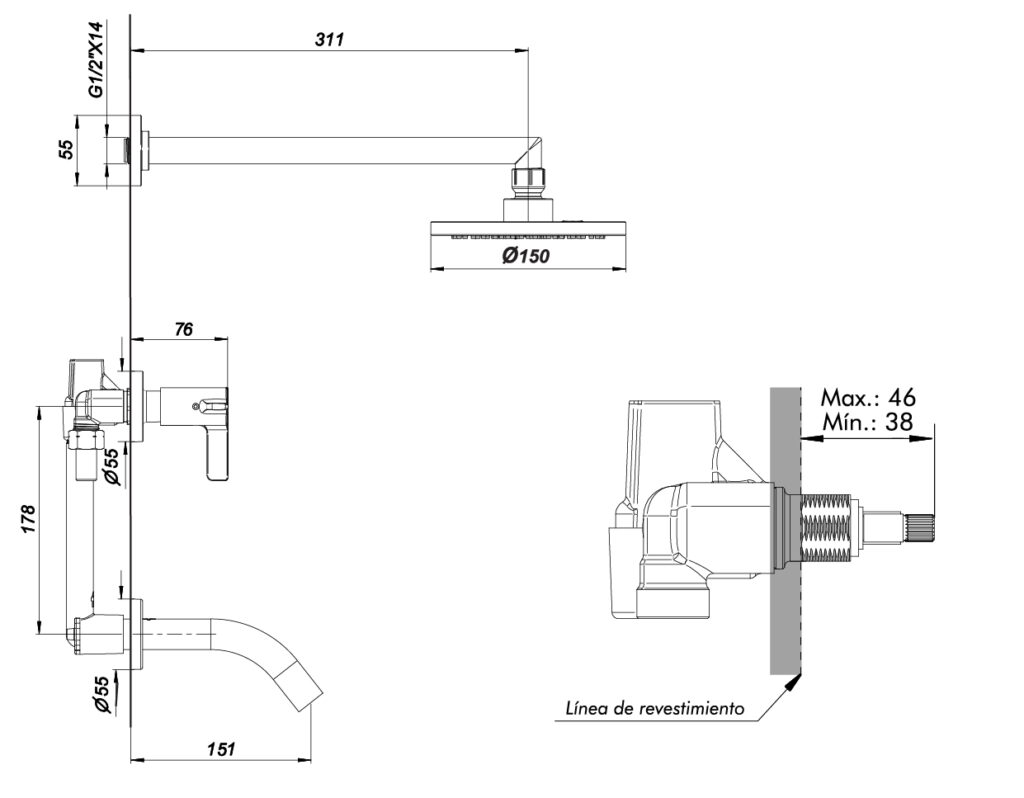 GRIFERIA DE DUCHA FV CON TRANSF. MAUNA G8 NEGRO MATE - 0103G8NG