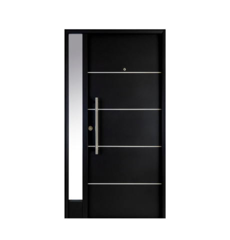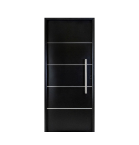 PUERTA ACERO NEXO NEGRA EXTERIOR 0,88 x 2,05 mts CON BARRAL CURVO Y LISTONES IZQUIERDA - S100I